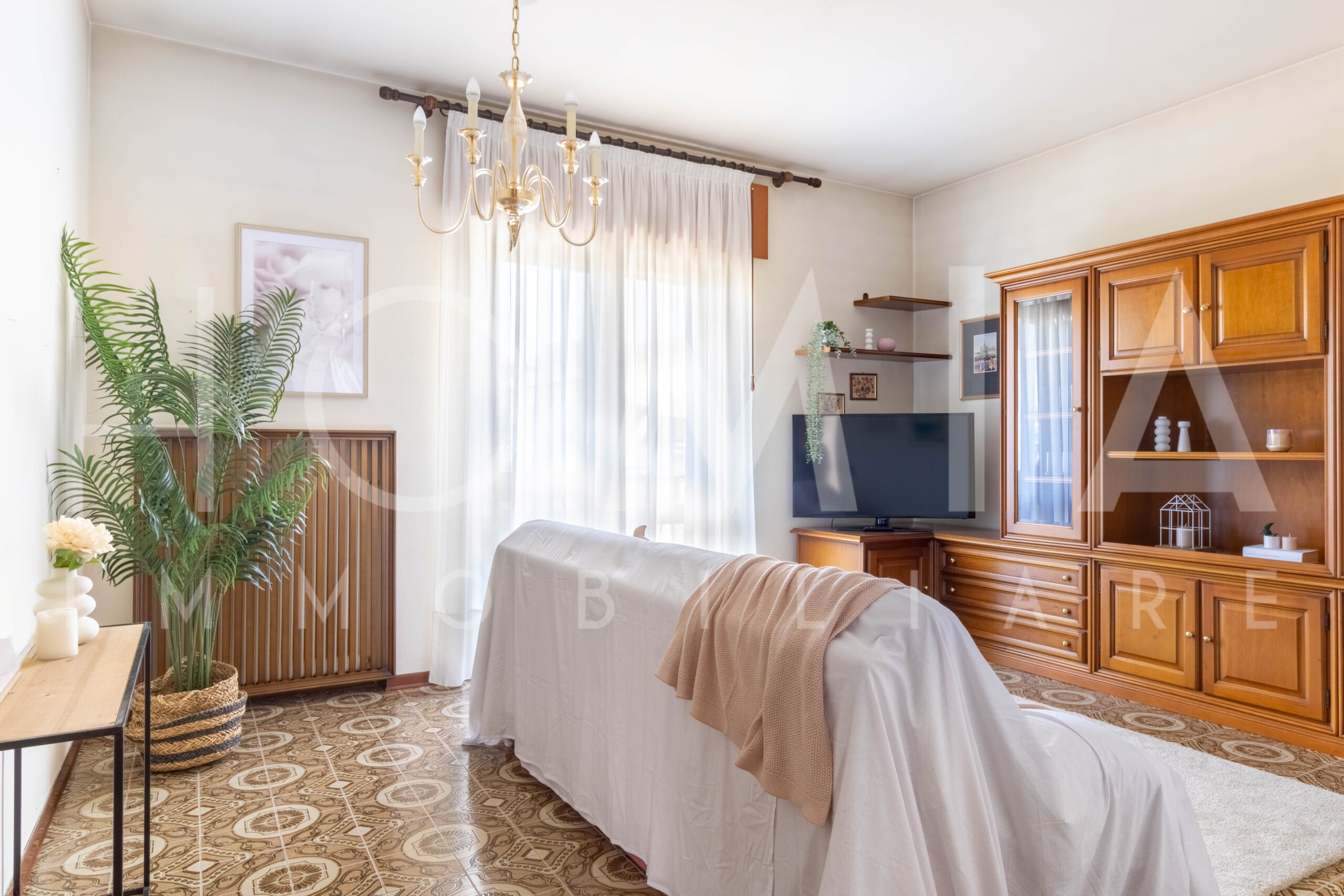 Al primo piano di un contesto raccolto, questo appartamento degli anni ’70 accoglie con una cucina abitabile separata dal soggiorno, due camere luminose, uno studio che diventa facilmente luogo di lavoro o spazio creativo, e un bagno finestrato. L’atmosfera è ordinata, pronta per essere abitata e personalizzata, con un garage al piano terra a completare la comodità quotidiana.